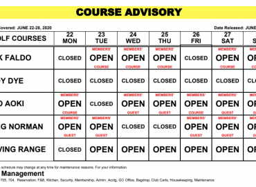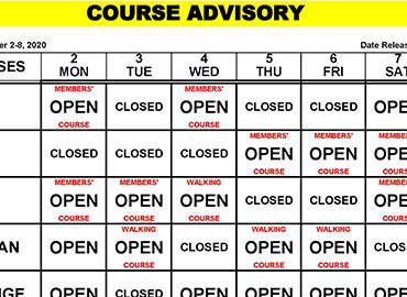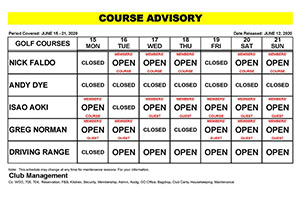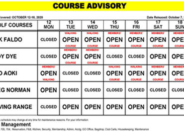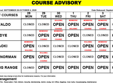 Course Maintenance Advisory – August 1, 2019