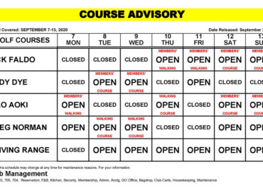Course Advisory September 7-13, 2020