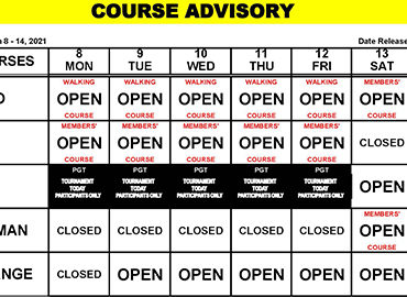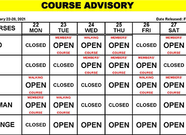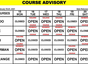 Course Advisory – February 15 – 21, 2021