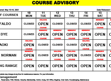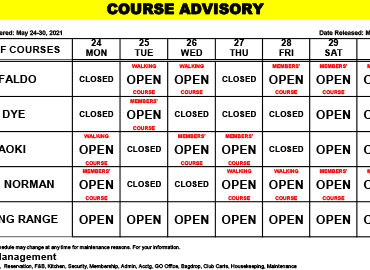 Course Advisory -May 24 – 30, 2021