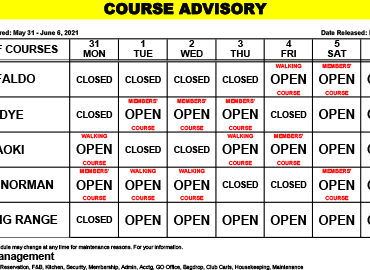 Course Advisory – May 31 – June 6, 2021