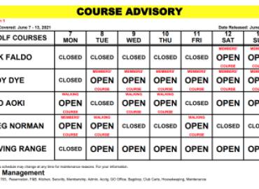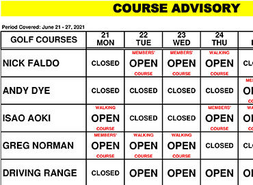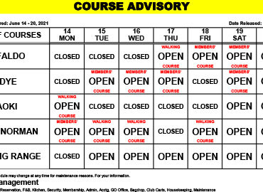Course Advisory – June 21-27, 2021