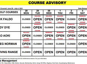 Course Advisory – June 28- July 4, 2021