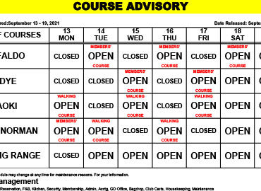 Course Advisory – September 13 – 19, 2021