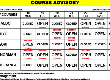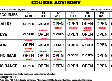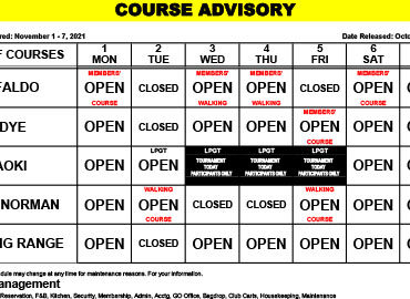 Course Advisory – November 1 – 7, 2021