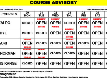 Course Advisory – December 20-26, 2021