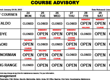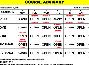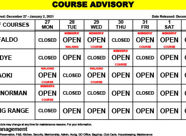 Course Advisory – December 27-Janaury 2, 2021