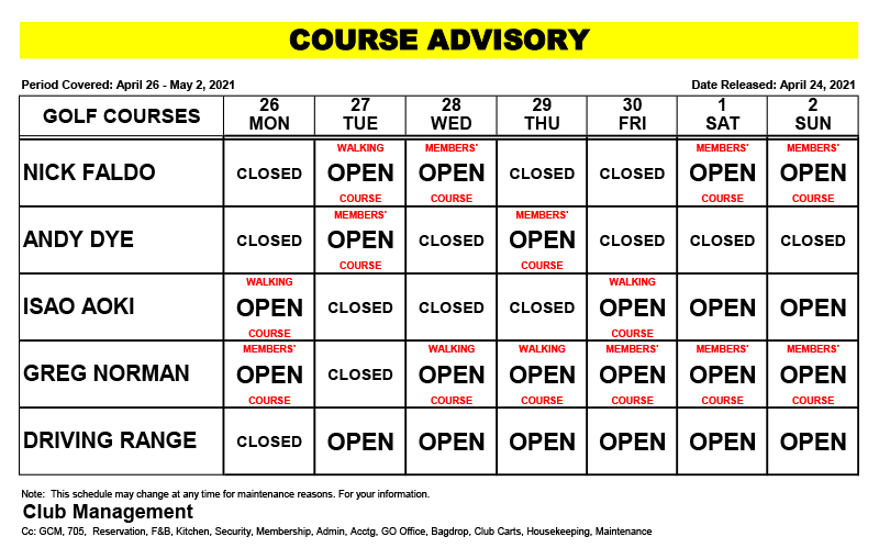 • Course Advisory – April 26 – May 2, 2021