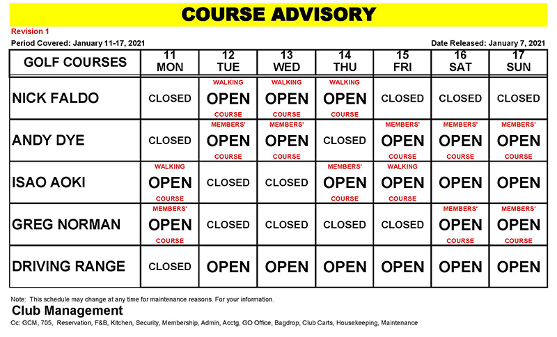 Course Advisory – January 11-17, 2021