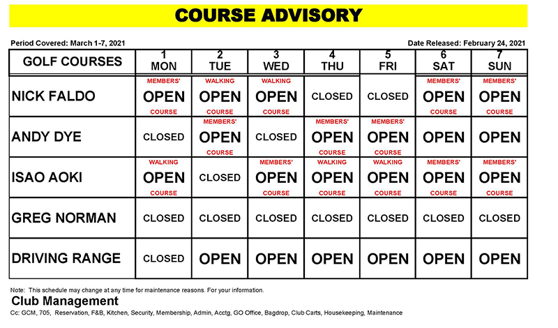 Course Advisory – March 1-7, 2021